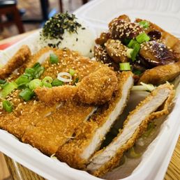 I love island-style poke, and it's hard to find outside of Hawaii. Poke Etc. is one of the few island-style poke places in San Diego and probably my favorite out of that list, so it's a surprise I have yet to write about it. Also a shoutout to their combo plates, which I will rave about in this review as well. Inside is decorated in a Hawaiian theme, the service is always very friendly and quick, and the food keeps me coming for more. Spicy garlic: As a garlic lover, I just knew I had to order the spicy garlic. Although it was good, I didn't love it as much as I thought I would. But it's loaded with garlic, the spiciness has a hint of that vinegar flavor. My partner loved this one, so we switched some of our poke. Kali Hawaiian: Mayo...is kind of my guilty pleasure? Not to mention krab meat. It's something that I grew up loving, that creaminess that always satisfies the taste buds. I liked the Kali Hawaiian. It was very creamy, and was basically a California roll sushi in poke form. I loved that this flavor was paired with tuna as well. Limu: I definitely would have gotten the limu flavor over the spicy garlic, but this was what my partner chose. Limu is a specific Hawaiian algae. The poke itself was slightly sweet, but it had that seaweed-y flavor that I love. It was delicious and I would definitely get this flavor again. Now I have to talk about the plates they serve! Ohana combo: This is the first thing I ever ordered from here. It comes with shoyu chicken and the Kalua pork. The soy-sauce flavor in the chicken is not overwhelming. It's a light flavor, which I appreciated. The chicken itself is very moist and big in portion. The Kalua pork is also very juicy and flavorful. Again, big portion sizes and they even allow you to sample some of their poke with the combo meal. Island bento: My partner and I wanted to try this combo, but we definitely prefer the first one. The island bento comes with teriyaki chicken and tonkatsu pork, along with the other components of a combo meal. The chicken is good, but definitely preferred the shoyu chicken over the teriyaki. The tonkatsu was also good, albeit a bit dry since it is fried. This one is great if you're looking for a heftier combo meal! Otherwise, would stick to the other combo.